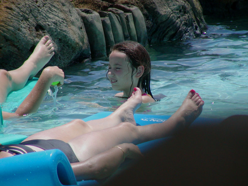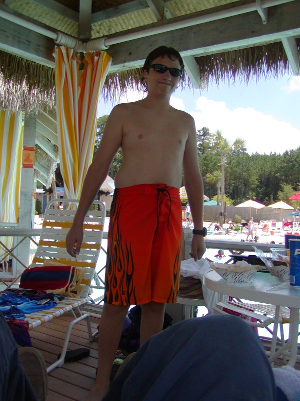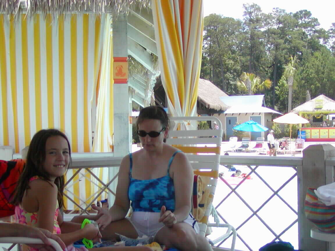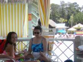 shade. Nita and Jenna relaxed in the cabana, while Nathan looked cool in